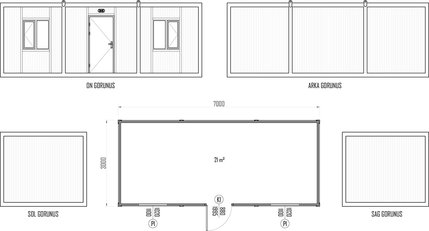 | Taşıyıcı Çerçeve | Tavan ve taban çerçeve kıvrımları ile köşe kolonları 2 mm pres büküm sacdan oluşmaktadır. Yatay ve dikey kayıtlar hazır profillerden oluşur. |
