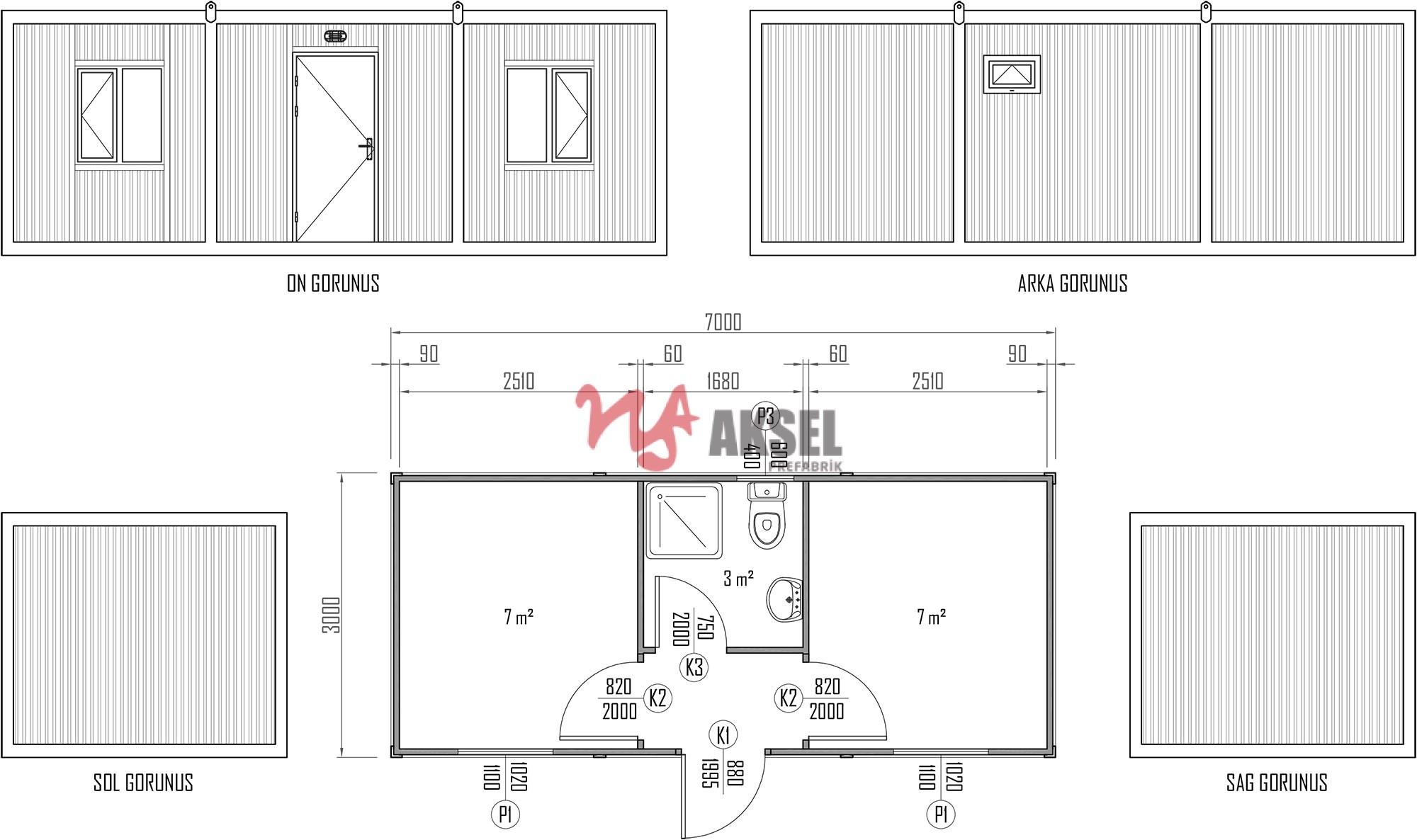 | Taşıyıcı Çerçeve | Tavan ve taban çerçeve kıvrımları ile köşe kolonları 2 mm pres büküm sacdan oluşmaktadır. Yatay ve dikey kayıtlar hazır profillerden oluşur. |
