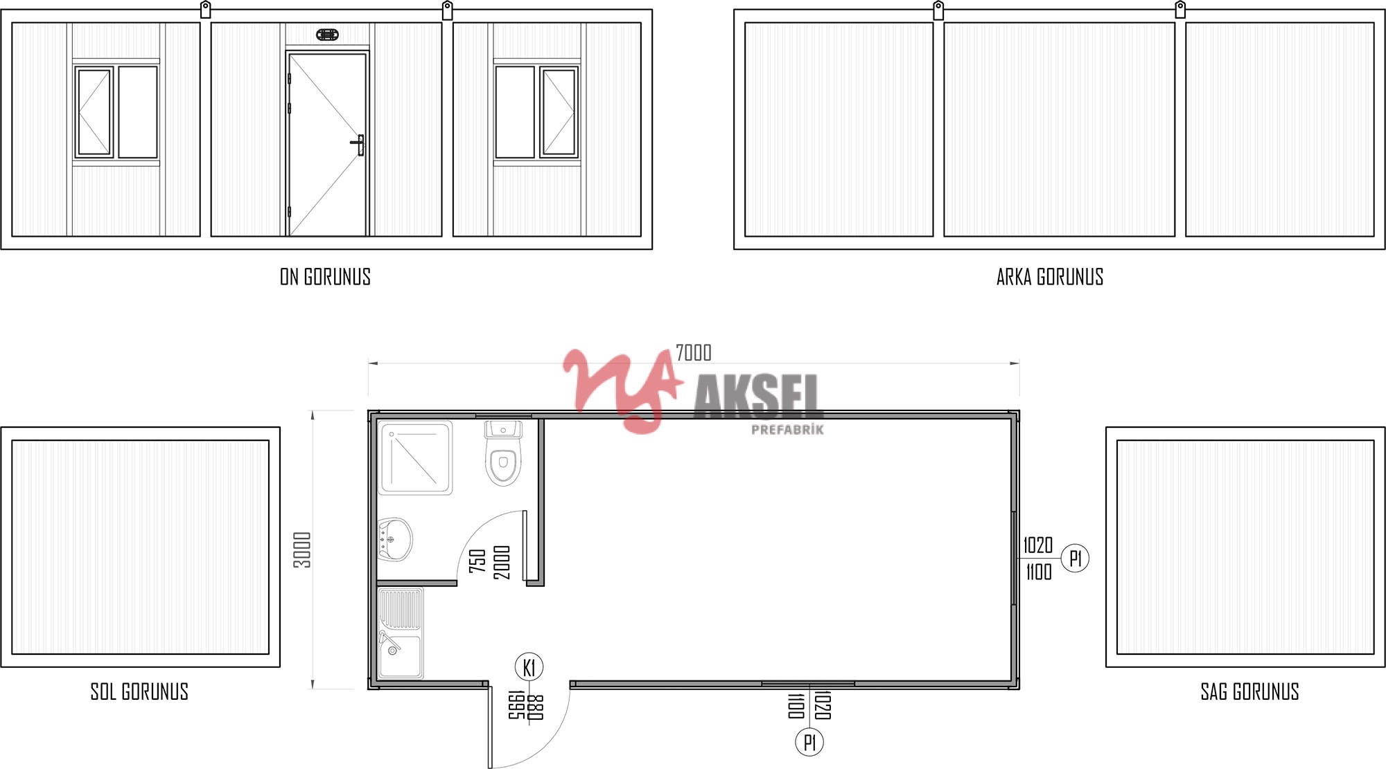Taşıyıcı Çerçeve Tavan ve taban çerçeve kıvrımları ile köşe kolonları 2 mm pres büküm sacdan oluşmaktadır. Yatay ve dikey kayıtlar hazır profillerden oluşur.
