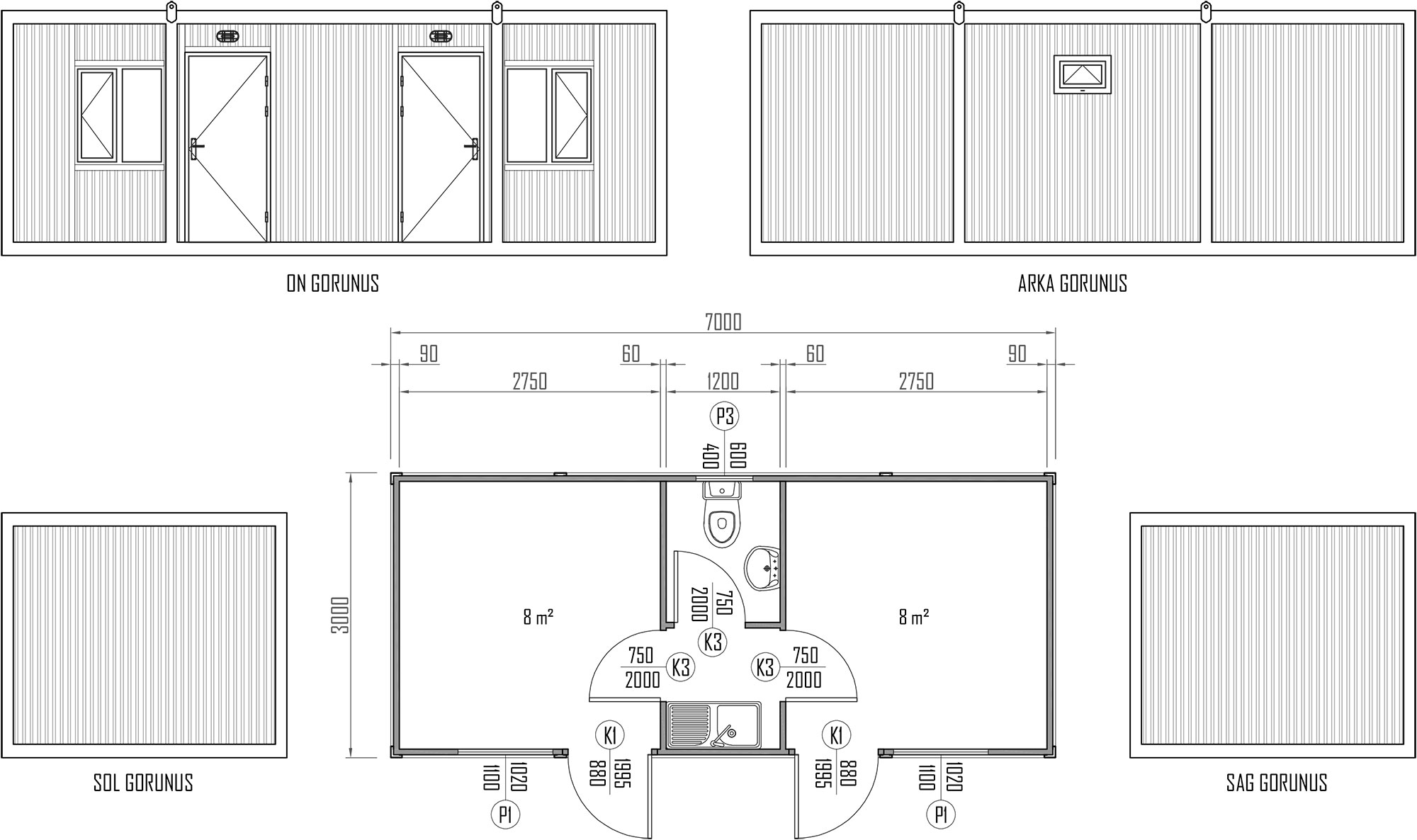 | Taşıyıcı Çerçeve | Tavan ve taban çerçeve kıvrımları ile köşe kolonları 2 mm pres büküm sacdan oluşmaktadır. Yatay ve dikey kayıtlar hazır profillerden oluşur. |