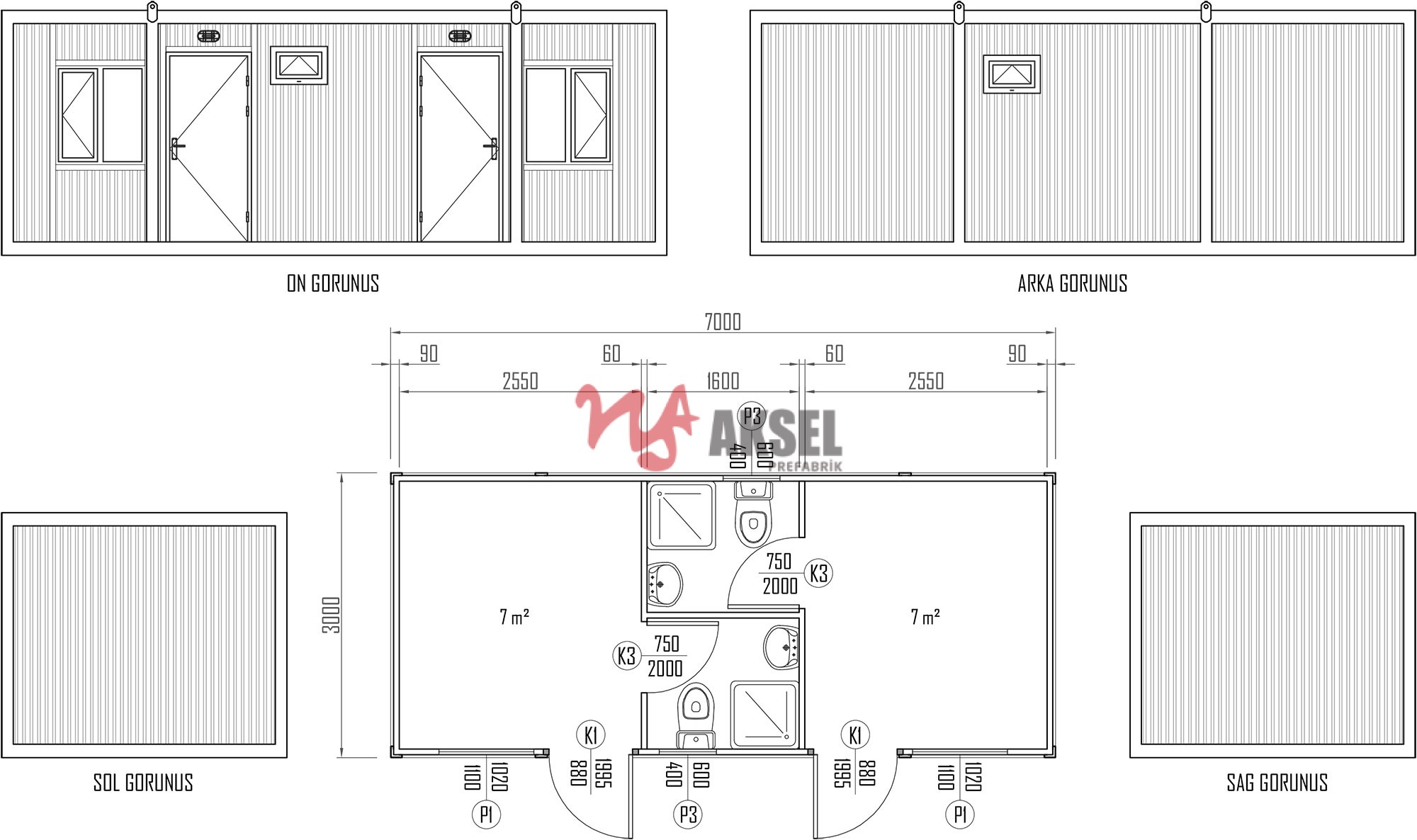| İç ve Dış Duvarlar | 60 mm EPS Sandviç panel |