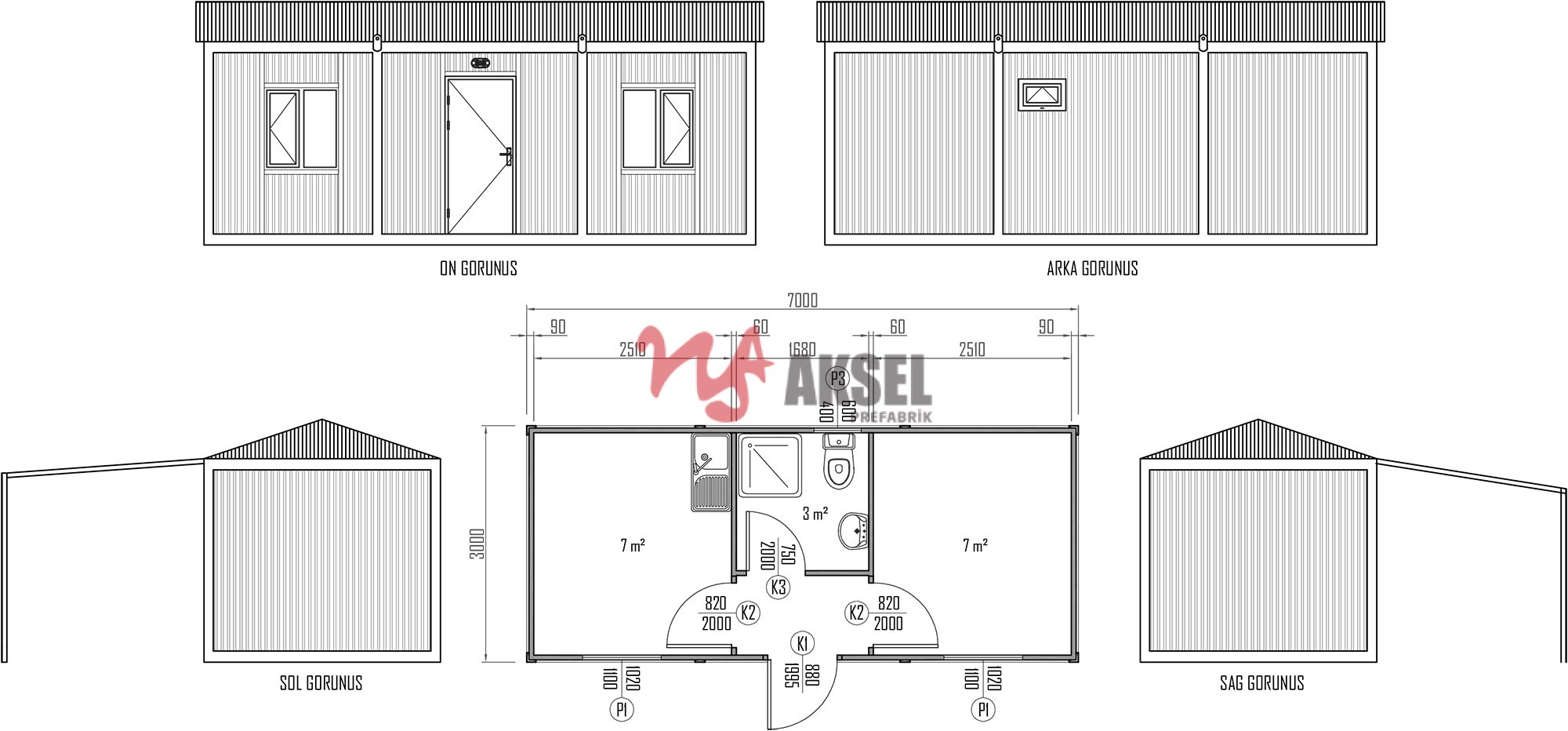 | Taşıyıcı Çerçeve | Tavan ve taban çerçeve kıvrımları ile köşe kolonları 2 mm pres büküm sacdan oluşmaktadır. Yatay ve dikey kayıtlar hazır profillerden oluşur. |