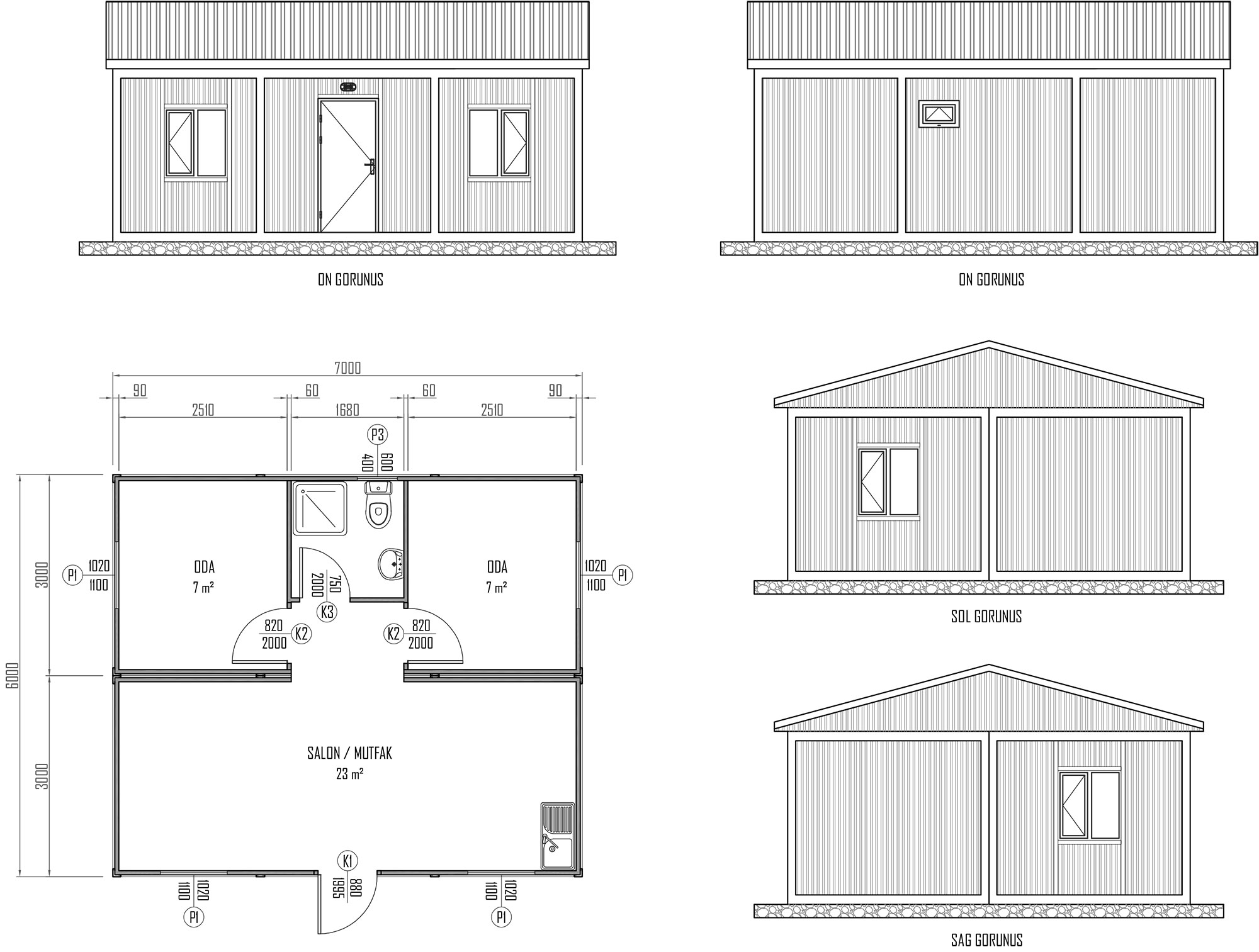 | İç ve Dış Duvarlar | 60 mm EPS Sandviç panel |