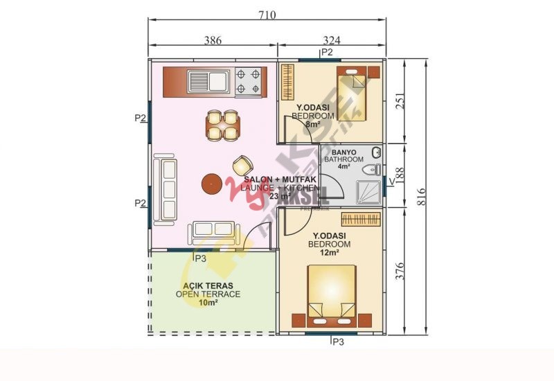 | İç Yüzey | 12 mm kalınlığında beyaz alçıpan levha |