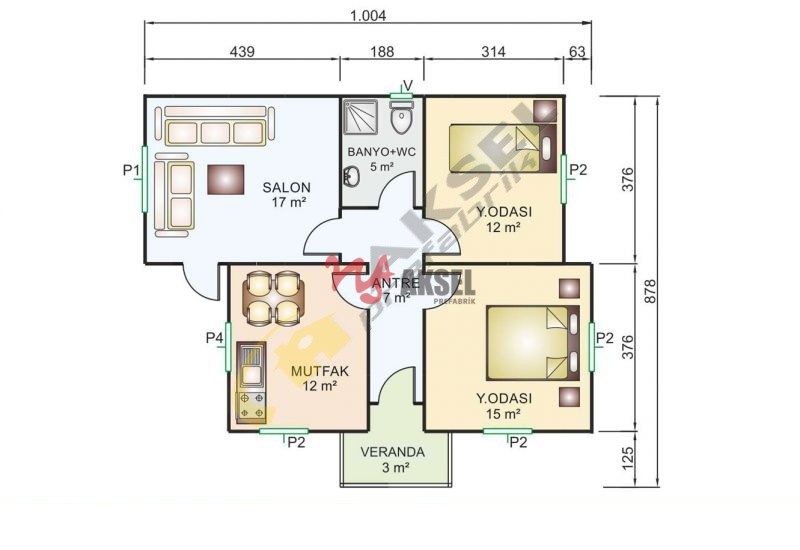 | İç Yüzey | 12 mm kalınlığında beyaz alçıpan levha |